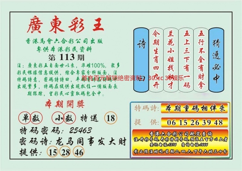 113期:六肖中特【兔羊龙狗鼠牛】开:蛇13